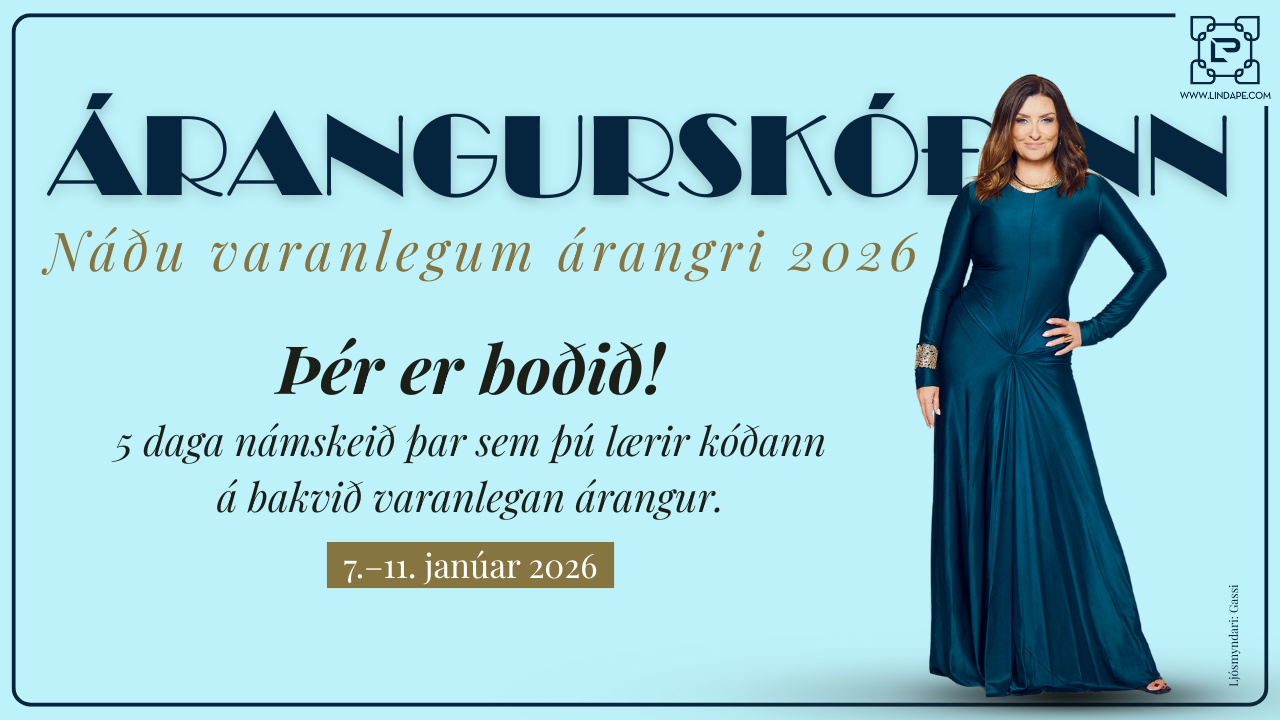 Árangurskóðinn er verkfæri sem Linda mun kenna ykkur á Lífsþjálfunarfundi 7. janúar. Hún mun fara yfir hvernig árangurskóðinn virkar og hvernig þið getið nýtt ykkur hann til enn frekari vaxtar. Þessi fundur verður opinn fyrir alla þá sem vilja svo bjóddu endilega vinkonu að taka þátt með þér 7. janúar kl. 12:00 og farið af krafti inn í nýtt ár 2026.